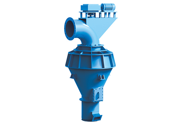 改進(jìn)型O-SEPA渦流選粉機(jī)是利用水平渦流原理進(jìn)行分級(jí)的第四代高效選粉機(jī),是我公司在引進(jìn)國(guó)外先進(jìn)技術(shù)的基礎(chǔ)上結(jié)合我國(guó)的具體生產(chǎn)實(shí)踐,改進(jìn)和完善后的新型粉體分級(jí)設(shè)備,廣泛應(yīng)用于水泥工業(yè)和粉狀料或其他工業(yè)相當(dāng)物料的分級(jí),具有高產(chǎn)低耗、處理量大、操作維護(hù)簡(jiǎn)單等優(yōu)點(diǎn)。 工作原理 選粉機(jī)出風(fēng)彎管接收塵器的進(jìn)風(fēng)口,由于收塵器風(fēng)機(jī)的抽風(fēng)作用,空氣經(jīng)選粉機(jī)一、二次風(fēng)口吸入選粉渦流殼內(nèi),在導(dǎo)風(fēng)葉的導(dǎo)流、轉(zhuǎn)子的旋轉(zhuǎn)和固定緩沖板的作用下,在導(dǎo)風(fēng)葉和轉(zhuǎn)子之間形成穩(wěn)定的環(huán)形水平渦流選粉區(qū)。粉磨后的物料從選粉機(jī)進(jìn)料口喂入,通過旋轉(zhuǎn)的撒料盤均勻撒向四周,因擋料圈的阻擋作用,物料在分散狀態(tài)下撒落在導(dǎo)風(fēng)葉和轉(zhuǎn)子之間的選粉區(qū)。在選粉渦流中運(yùn)動(dòng)的粉塵顆粒將同時(shí)受重力、風(fēng)力和旋轉(zhuǎn)離心力的作用,細(xì)小輕微的顆粒隨氣流被吸入轉(zhuǎn)子內(nèi)部,經(jīng)出風(fēng)口由收塵器收集成為成品;粗重顆粒則下落,終被收集到下錐體的粗粉出口,返回到磨機(jī)再磨,從而形成閉路系統(tǒng)。改變轉(zhuǎn)子轉(zhuǎn)速可有效調(diào)節(jié)成品細(xì)度。 技術(shù)參數(shù)