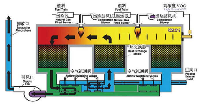 ![]() 工作原理 PDR-RTO是將傳統(tǒng)RTO結(jié)合高溫脈沖波反應(yīng)器的焚化爐,PDR處理難處理及高濃度VOCs氣體;燃燒室內(nèi)置水管式鍋爐,有效回收過剩能源;蓄熱床能源效率和破壞效率高。PDR-RTO產(chǎn)品組合能夠很好的處理高濃度以及低濃度VOCs,以及濃度變化跨度比較大的VOCs氣體。能夠達到VOCs處理99%,熱回收效率達到95%以上。